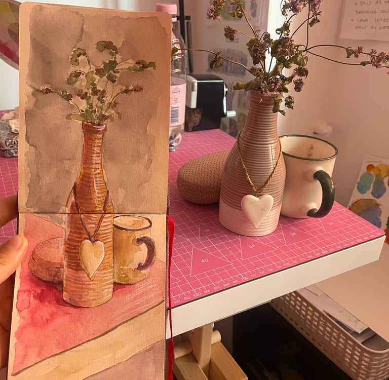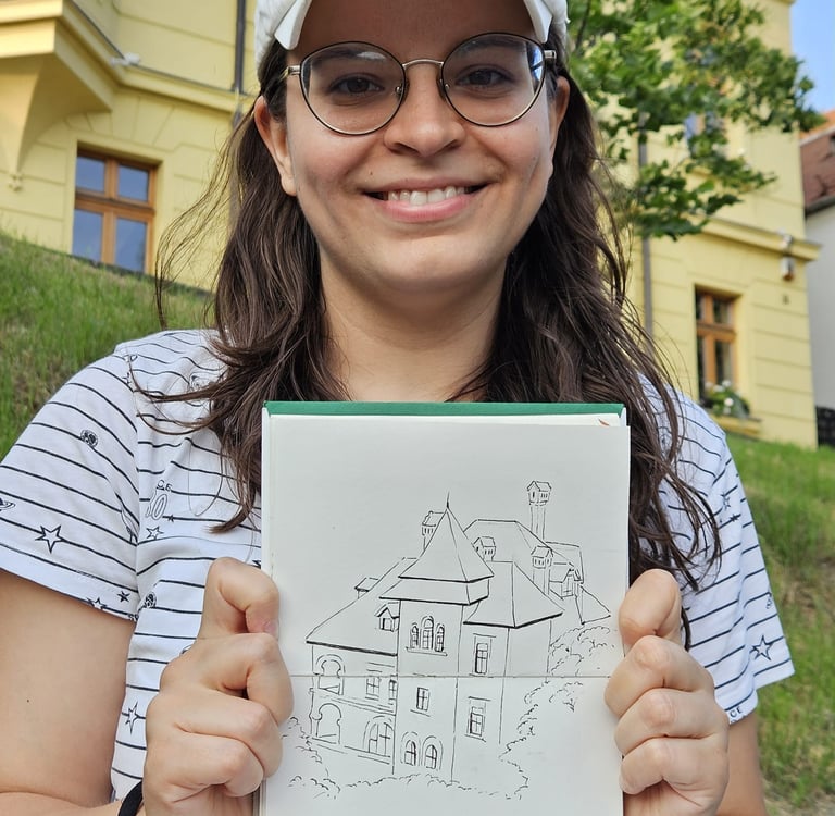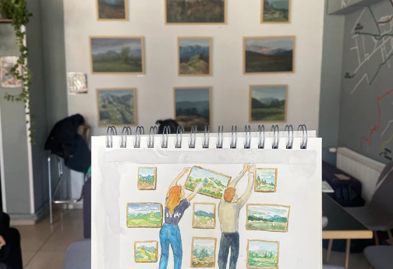 De aproximativ 2 ani fac parte din grupul Urban Sketchers Brașov, iar în octombrie 2025 am participat la o expoziție de grup cu caietele de schițe.